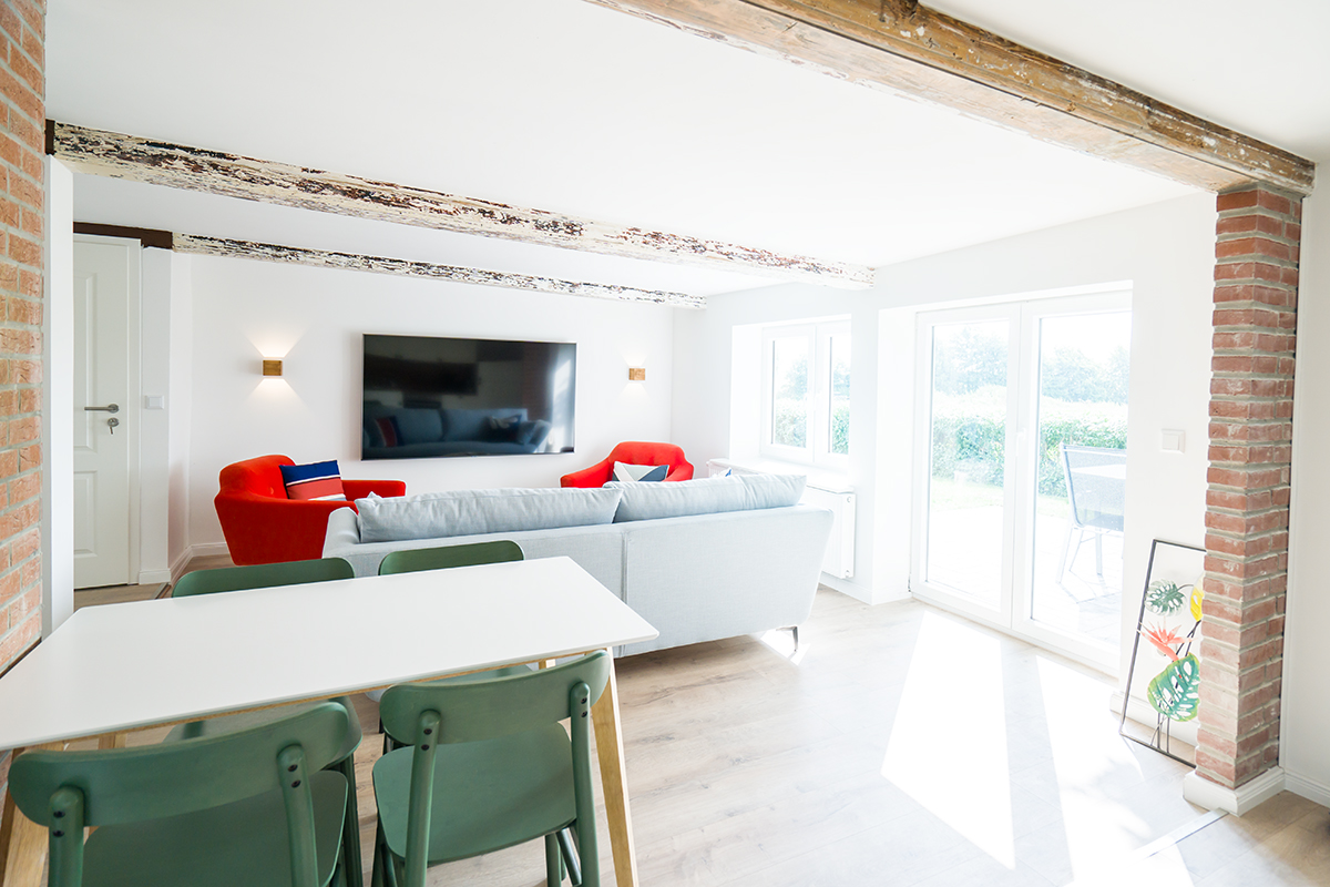 Als eines der einzigen Ferienhäuser in Schleswig-Holstein können alle 4 Wohnungen einzeln vermietet werden, als auch durch spezielle Trenntüren miteinander verbunden werden, womit bis zu 16 Personen als Gruppe gleichzeitig in unserem Holiday Resort beherbergbar sind. Insgesamt umfasst das Objekt 4 einzelne Wohnungen.