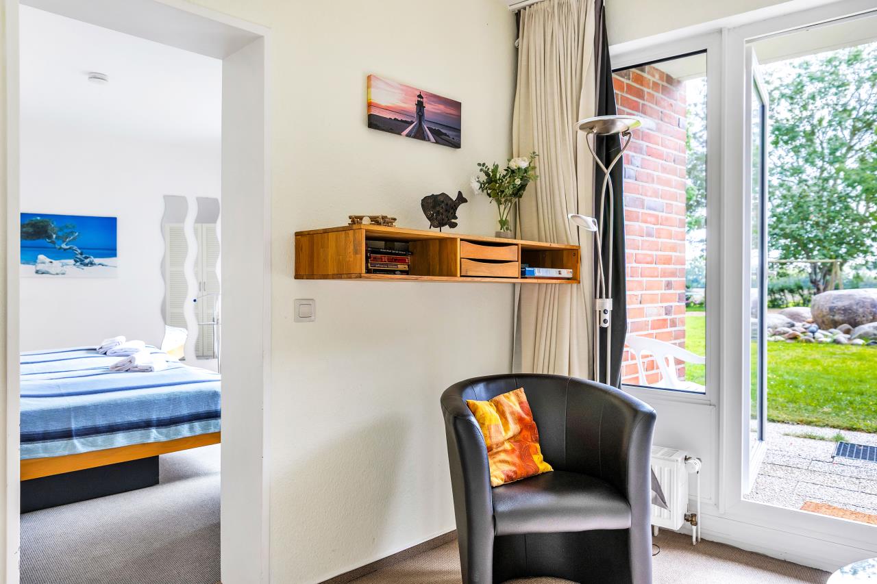 Das Drei-Zimmer-Appartement D5 für den gemütlichen Urlaub zu Zweit (auch zu Viert möglich) liegt im Erdgeschoss der Apartmentanlage Godewind. Es besteht aus einem Wohnzimmer, einer Küche mit Eßplatz, einem Schlafzimmer und einem Duschbad. An jeden Raum grenzt eine möblierte Terrasse die zur großen Gartenanlage vis á vis des Ostseestrandes mündet.