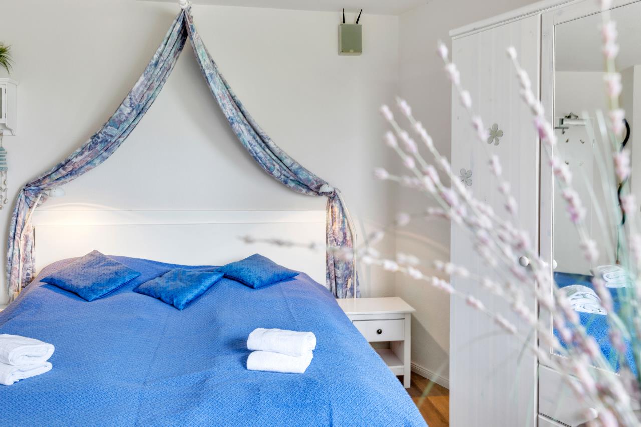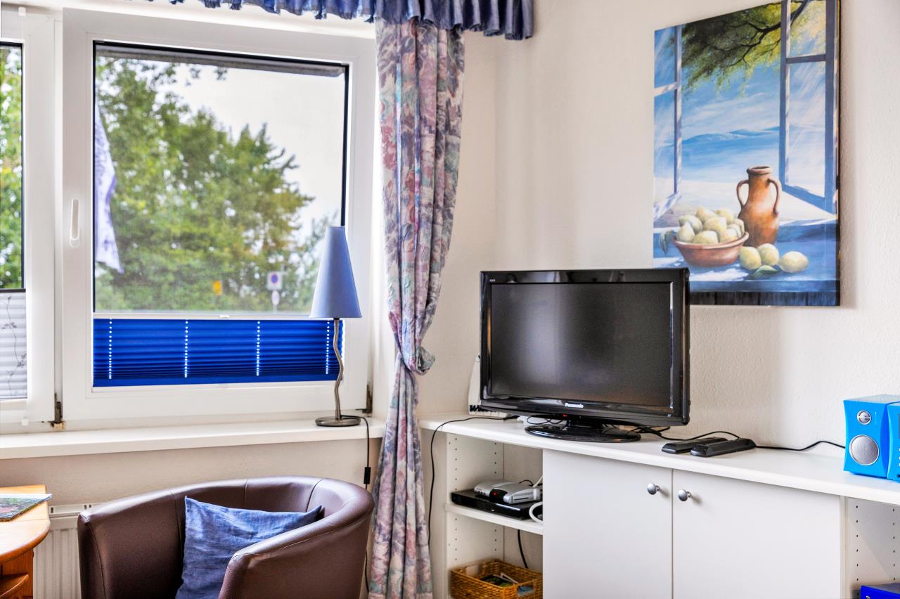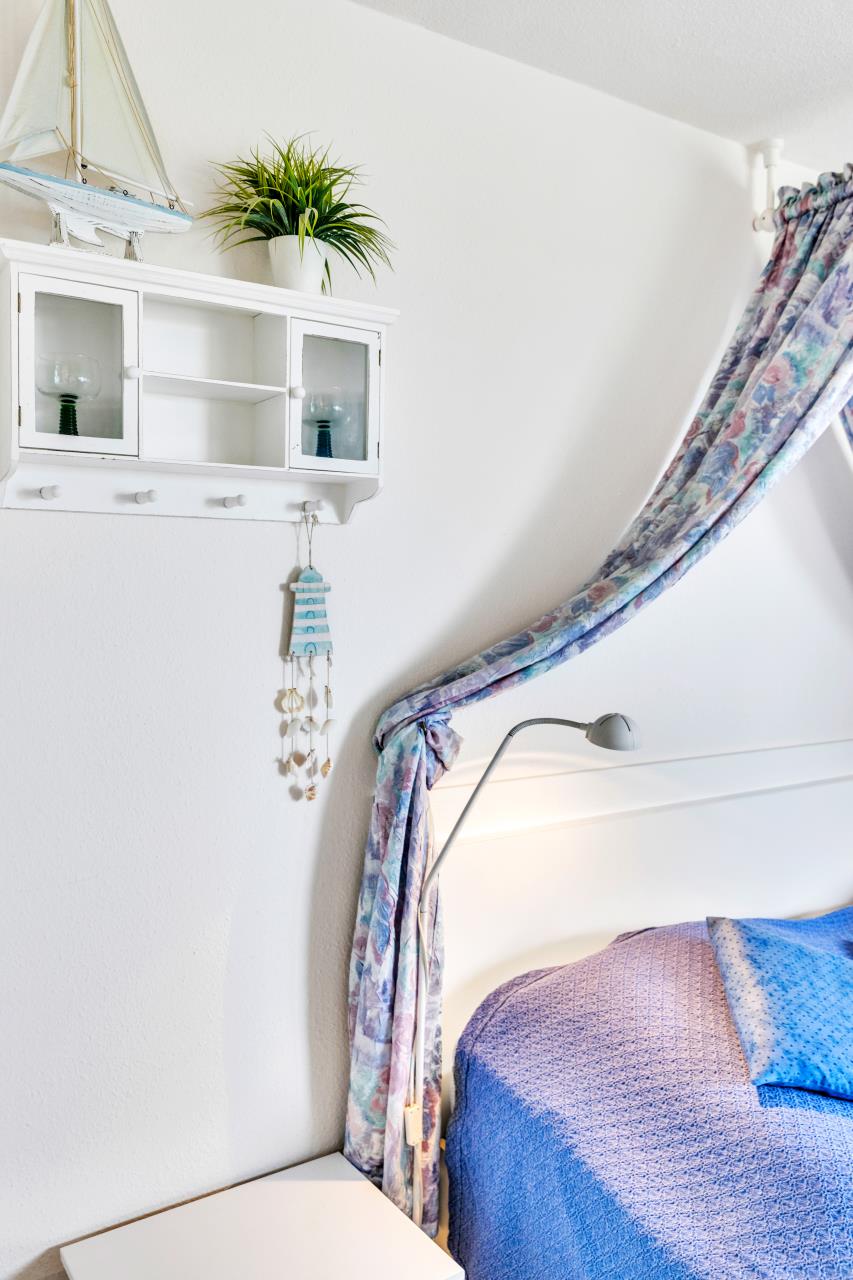 Eine gut ausgestattete Küchenzeile mit Kühlschrank, Minibackofen, Mikrowelle, 2-Plattenherd, Kaffeemaschine, Wasserkocher, Mixer und Toaster befindet sich in dem charmanten Apartment. Eine kleine Sitzgruppe direkt vor den Fenstern mit Blick auf Strand und Meer, ein Doppelbett und Kleiderschrank und ein separates Duschbad bieten eine ideale Übernachtungsmöglichkeit für zwei Personen (evtl. auch mit einem Kleinkind). Ein Babybett und ein Hochstuhl können dazu gestellt werden. Radio, TV und Wlan stehen selbstverständlich zur Verfügung.