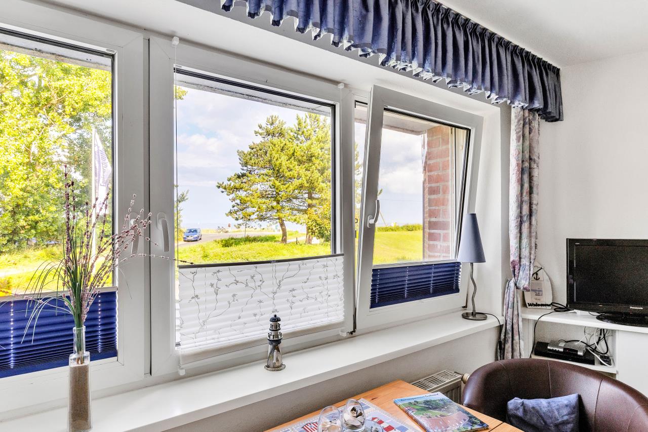 Das Studio-Appartement D6 mit Meerblick für einen gemütlichen Urlaub zu Zweit, liegt im Hochparterre der Ferienanlage. Durch eine große Fensterfront genießen Sie den Sonnenaufgang über der Ostsee. An den Fenstern befinden sich Plissees, mit denen Sie sich vor zu viel Sonne oder der Helligkeit schützen können. Ein Insektenschutz wurde ebenfalls angebracht.