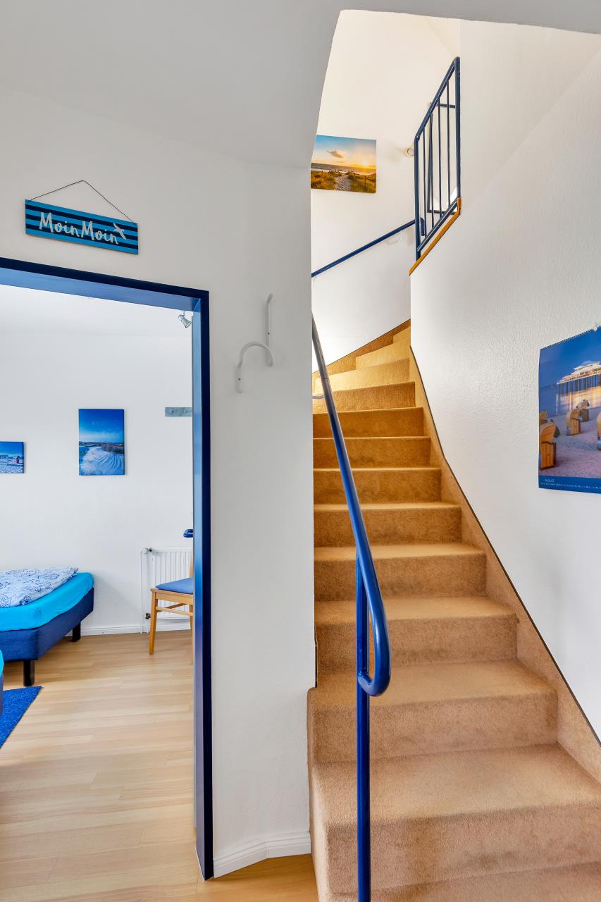 Die Ferienwohnung mit Meerblick befindet sich auf 2 Etagen und bietet Platz für 4 Personen. Somit ist sie der ideale Ort für einen entspannten Familienurlaub.