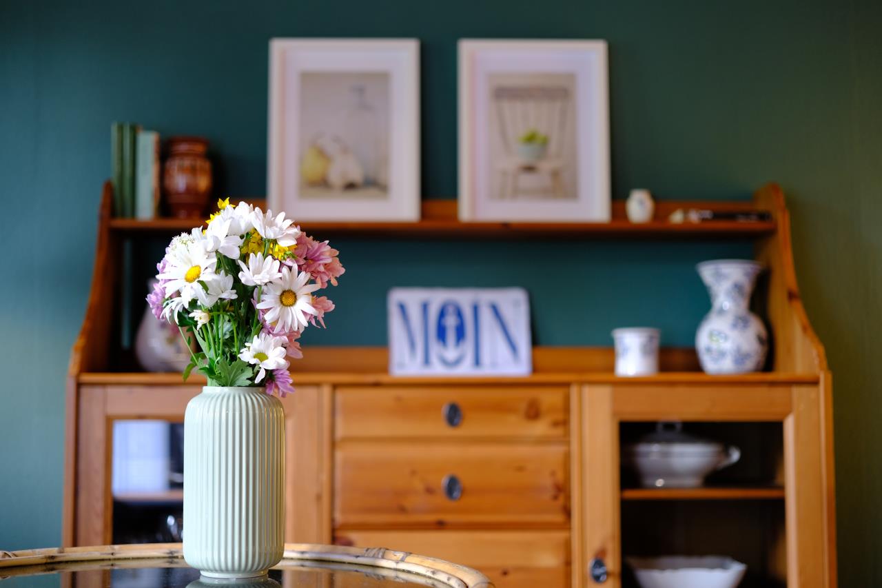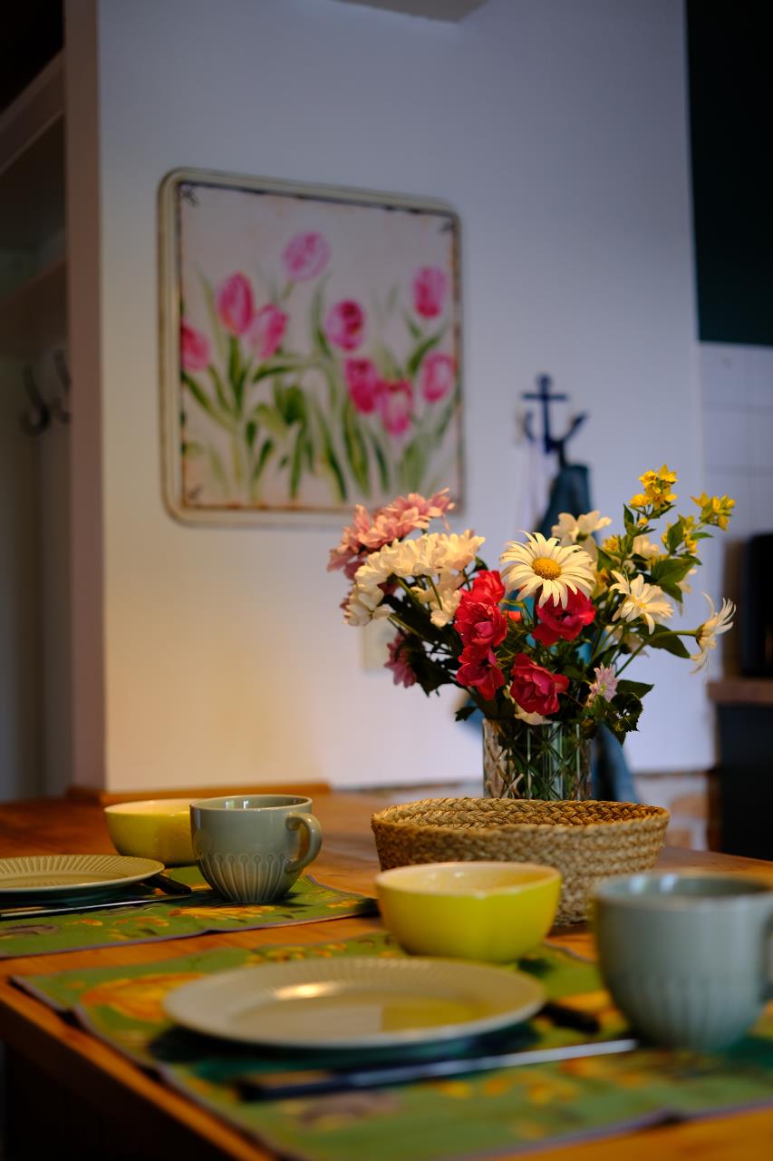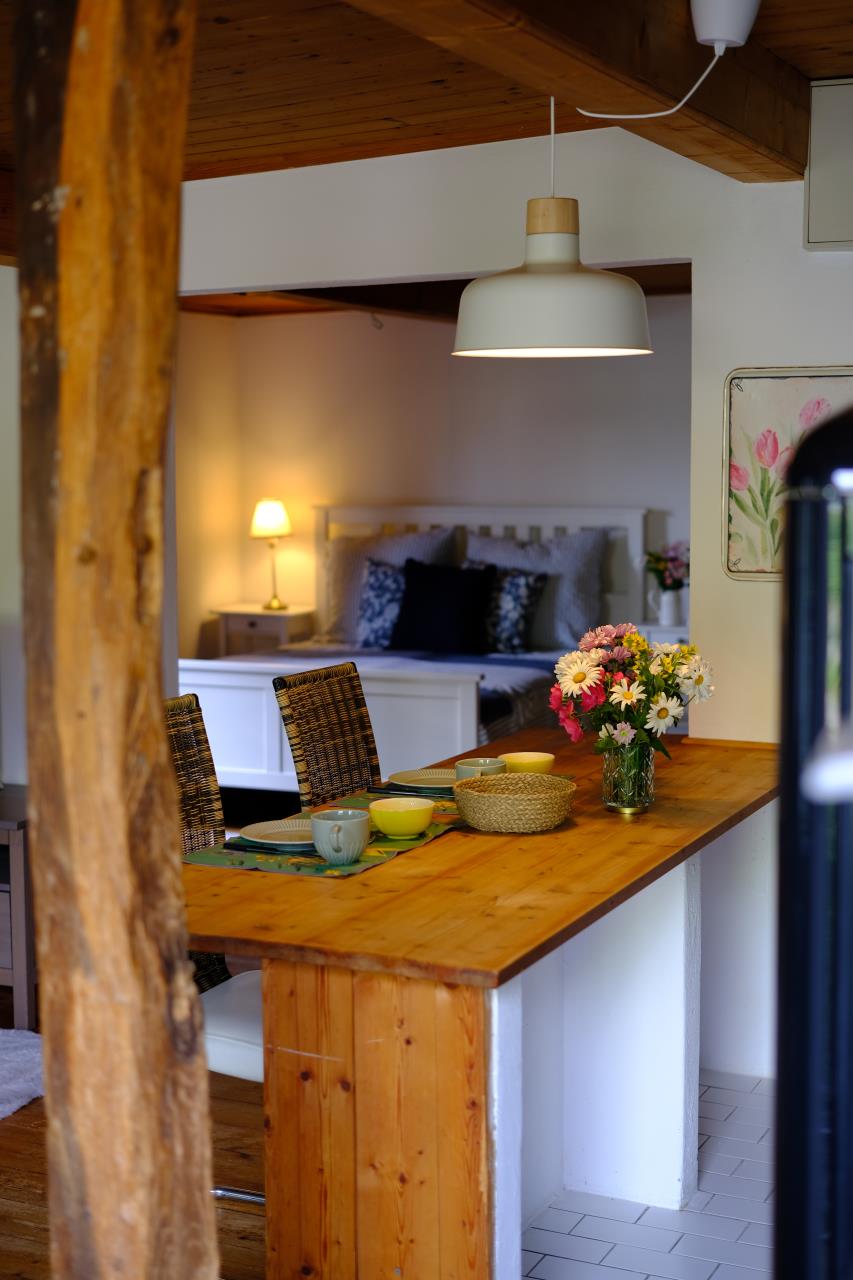 Die Wohnung befindet sich in einem renovierten Fachwerkhaus aus dem 18. Jahrhundert unter Reet und erstreckt sich auf 40 qm.
