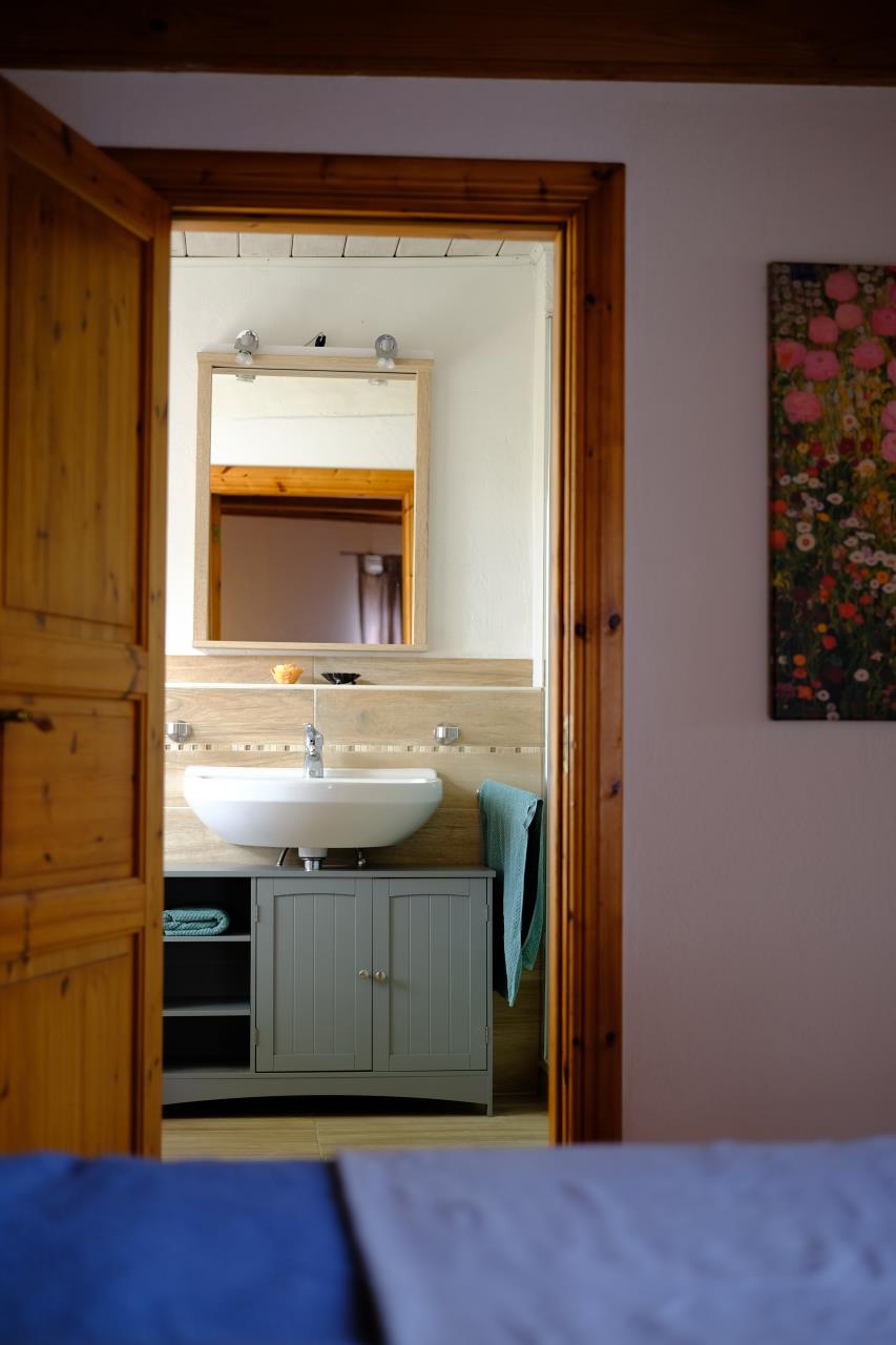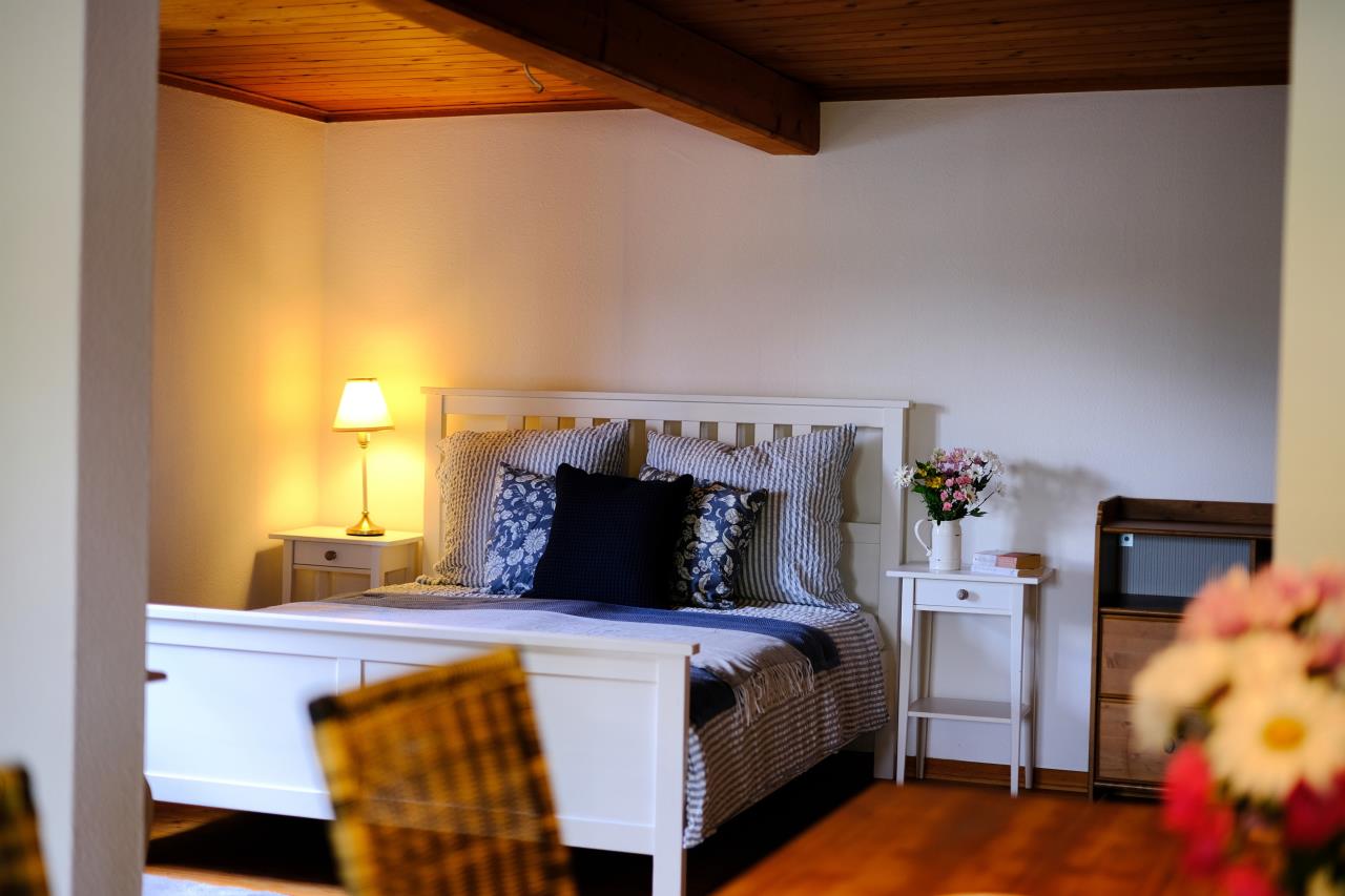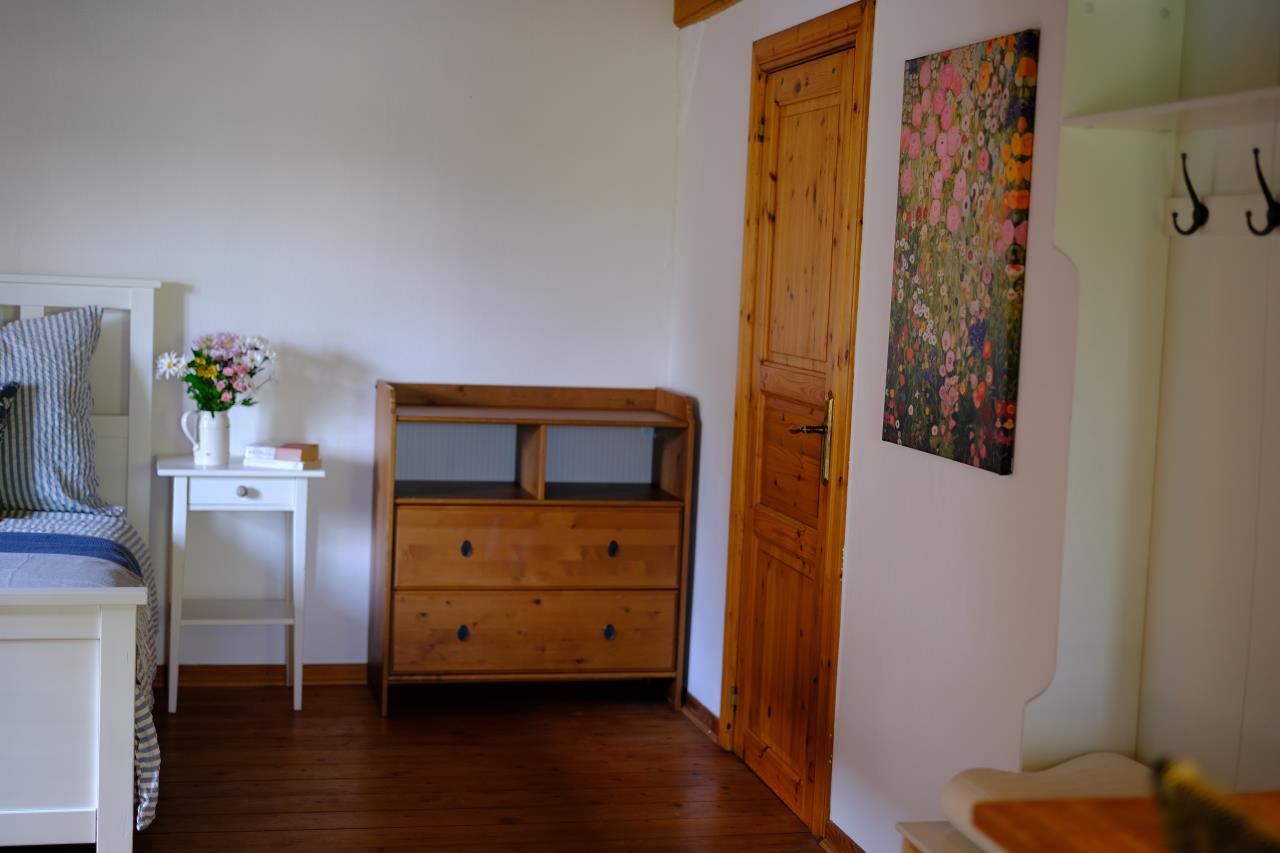 Das Schlafzimmer ist ruhig zum Garten gelegen und mit einem Doppelbett und einem kleinen Schreibtisch ausgestattet. Genießen Sie bei schönem Wetter den romantischen und naturnahen Garten nebst Terrasse und Grill oder fahren Sie mit dem Rad 5 Minuten zur nächsten Badestelle an der Schlei.