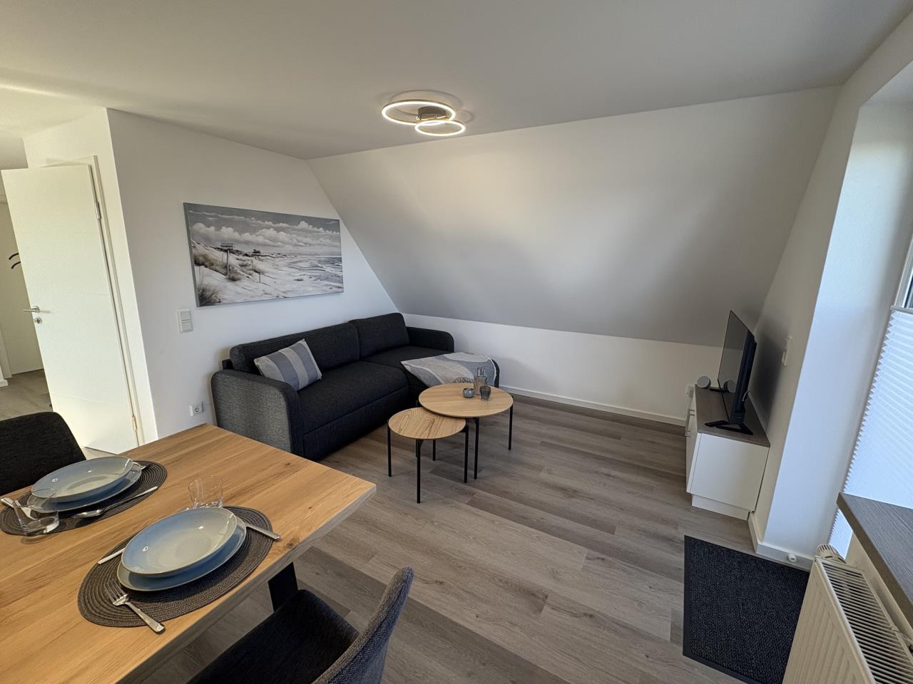 Die "Windböe" bietet Platz für Freunde und Familie bis zu 6 Personen und liegt im Erdgeschoß. Neben dem schönen Wohn- Essbereich mit Schlafsofa verfügt die Unterkunft über zwei Schlafzimmer mit einem Doppelbett und zwei Einzelbetten. Die gut eingerichtete Küche bietet einen zusätzlichen Essbereich mit direktem Zugang auf die Sonnenterrasse.