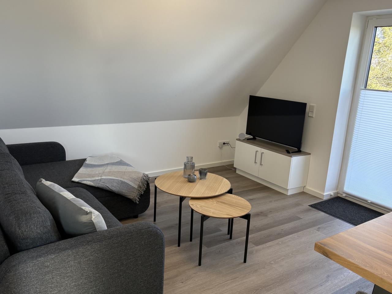 Die Wohnung "Frische Brise" im Obergeschoss bietet Platz für bis zu 4 Personen. Neben dem gemütlichen Wohn- Essbereich mit Schlafsofa verfügt die Ferienunterkunft über ein Schlafzimmer mit einem Doppelbett. Über das Wohnzimmer gelangen Sie auf eine großzügige Dachterasse mit Blick in den Garten auf der Sie den Tag ausklingen lassen können.