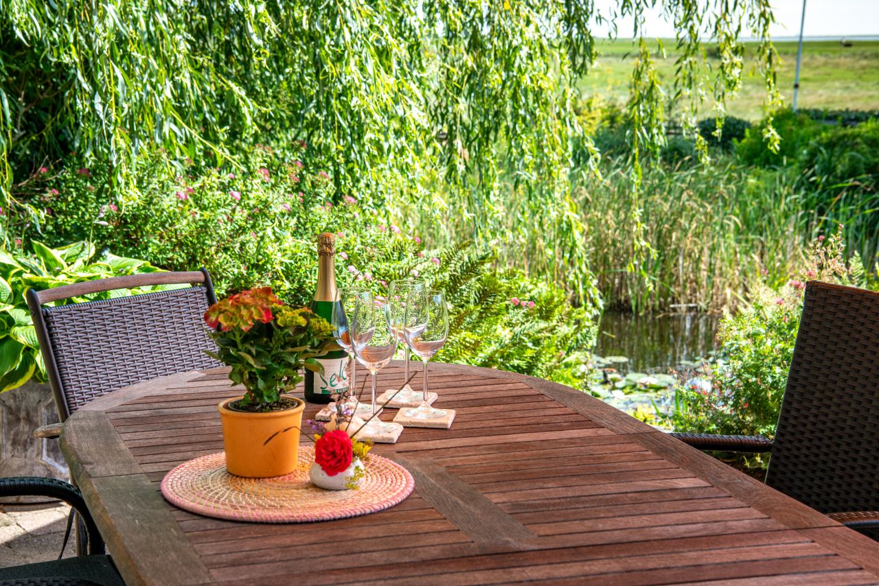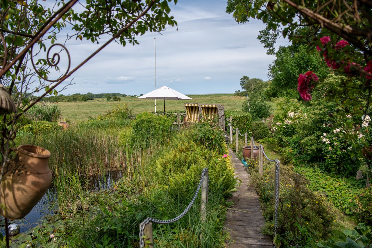 Genießen Sie die Ruhe auf der Liege oder direkt im Strandkorb auf der hinteren Terrasse. Die Umgebung lädt zu ausgedienten Spaziergängen und langen Radtouren ein.