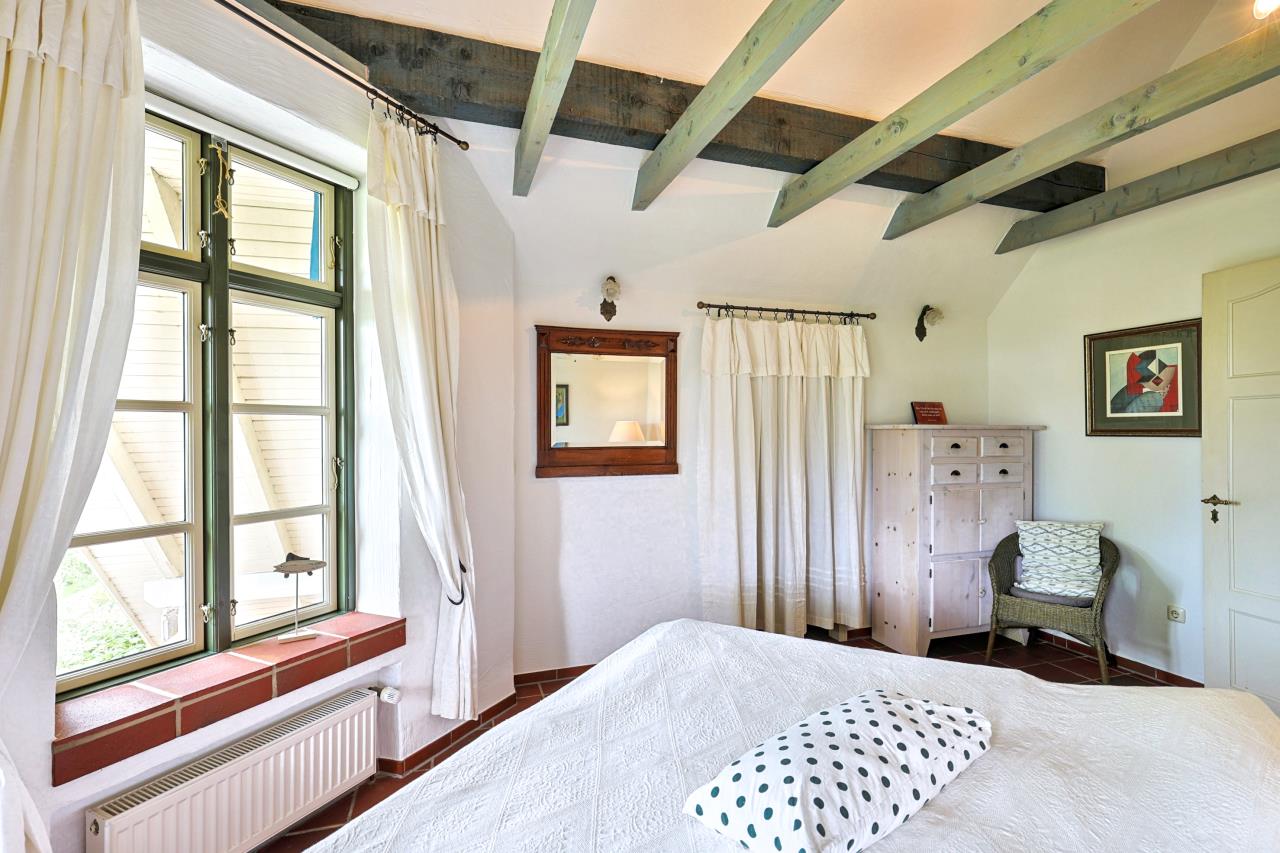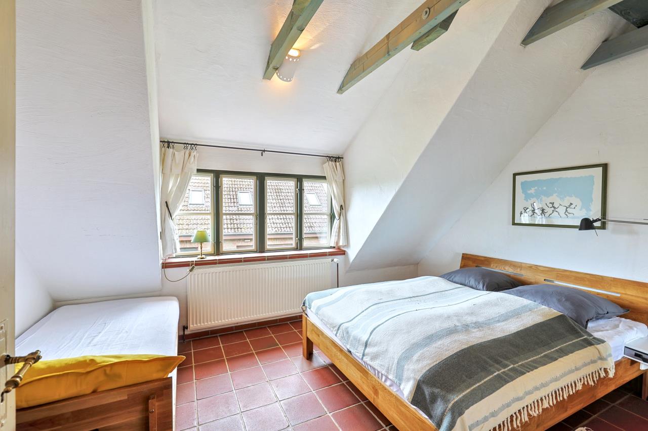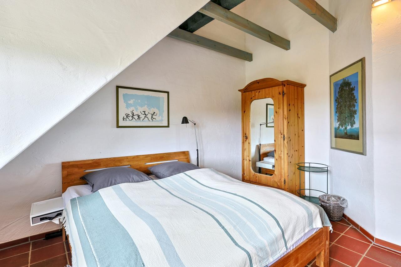 Im OG befinden sich neben dem geräumigen Bad mit Dusche zwei Schlafzimmer. Im Schlafzimmer II steht ein zusätzliches Bett (90x 200), beide Schlafzimmer sind großzügig geschnitten und bieten ausreichend Platz.