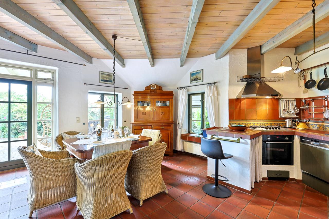 Der großzügige Wohn- und Essbereich, mit der charmanten Küche im EG, und dem direkten Zugang zum Garten, bietet Platz für die ganze Familie. An regnerischen Tagen sorgt der Kamin für den Wohlfühlfaktor.
